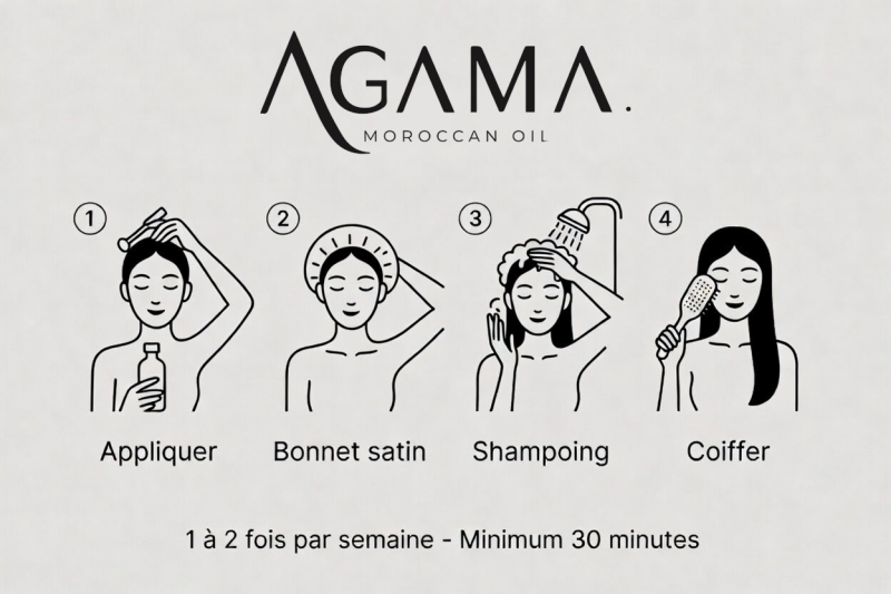 Les huiles naturelles sont un excellent moyen de nourrir et de revitaliser vos cheveux avant le lavage. Appliquer nos huiles AGAMA Morrocan Oil en pré-shampooing pour aider à restaurer l’hydratation, renforcer les follicules capillaires et protéger vos cheveux contre les agressions extérieures. Pour de meilleurs résultats, appliquez l’huile sur les longueurs et les pointes, laissez poser pendant au moins 30 minutes (vous pouvez aussi laisser toute la nuit pour un soin profond), puis rincez avec un shampooing doux. Ce rituel simple peut transformer la santé et l’apparence de vos cheveux en leur offrant un soin riche et naturel.